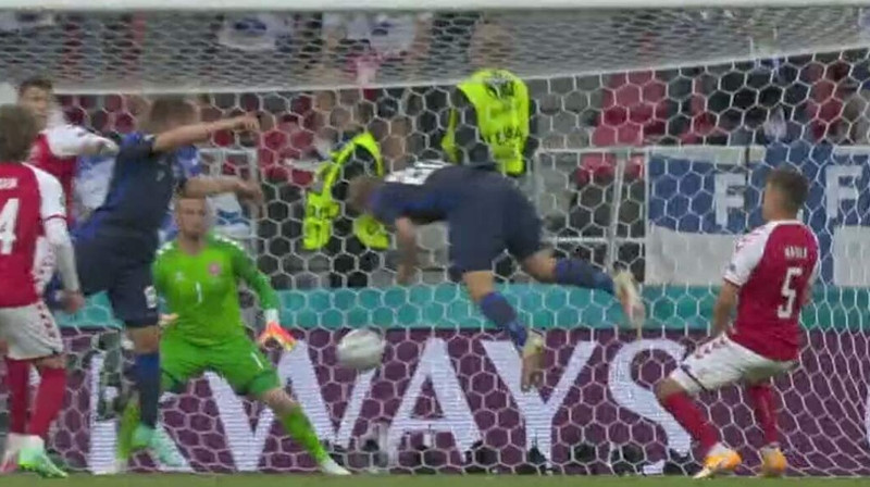 Dānijas galvaspilsētā Kopenhāgenā šovakar aizvadītajā "Euro 2020" mačā Somijas futbolisti negaidīti pārspēja dāņus (1:0), kaut gan laukuma saimniekiem bija būtisks pārsvars. Dažas sekundes pirms vārtu guvuma televīzijas tiešraidē parādīja, ka sitienu attiecība ir 18:0 par labu dāņiem. Vārti: Joels Pohjanpalo 60`. Video: tv3play.lv (1:27 min)