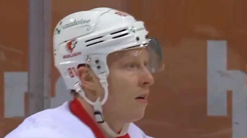 Šveices hokeja čempionāta mačā "Lausanne" latviešu uzbrucējs Ronalds Ķēniņš (#81) piektdien guva vārtus, panākot 3:3. Lozannas komanda viesos piekāpās Bernes vienībai - 5:6 papildlaikā. Video: LHC TV, MySports, HC Lausanne