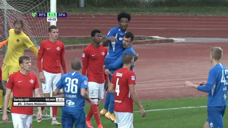Kouadio 2. puslaika sākumā gūst RFS uzvaras vārtus pret "Spartaku"