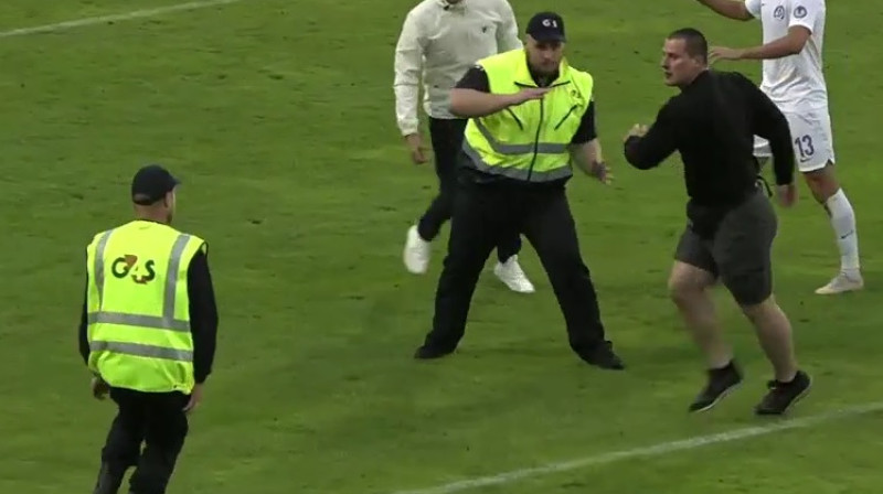 Baltkrievu fani izrēķinās ar apsargiem un mežonīgi atzīmē vārtu guvumu Liepājā