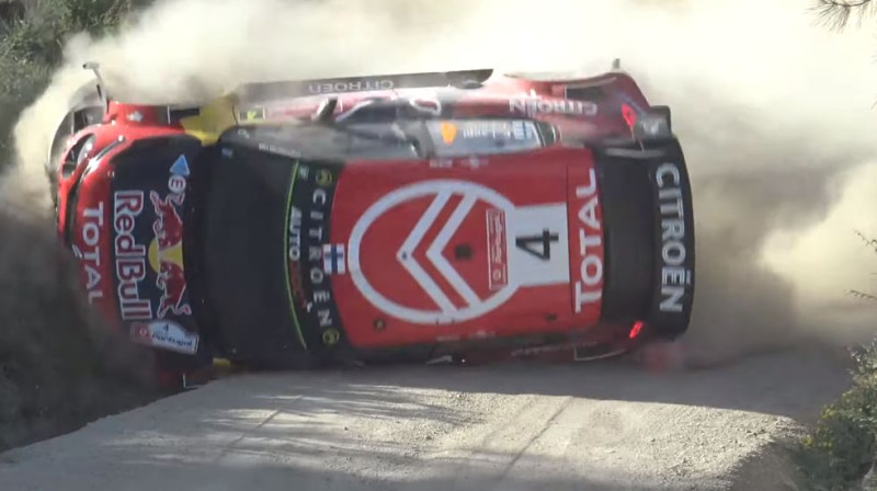 Viens no Portugāles WRC rallija līkumiem izrādījās ļoti viltīgs, un tajā rupjas kļūdas pieļāva arī vairākas vadošās un daudz pieredzējušās ekipāžas. Saslīdēja "Toyota" komandas pilots Kriss Mīke, bet "Citroen" pārstāvis Esapeka Lapi, aizķerot iekšmalu, pat uzmeta divus kūleņus. Video avots: https://www.youtube.com/watch?v=Ooe...