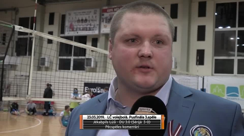 Pēcspēles intervija ar "Jēkabpils Lūšu" galveno treneri Mārci Obrumani, pēc "Credit24" meistarlīgas Latvijas čempionāta pusfināla 3. spēles starp SK "Jēkabpils Lūši" un Daugavpils Universitāti 3:1 (23, 22, -28, 17), sērijā 3-0.