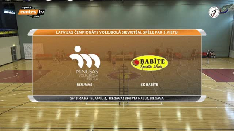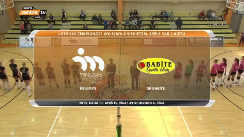 11.04.2015 Latvijas čempionāts volejbolā sievietēm. Spēle par 3.vietu: RSU/MVS - SK Babīte. Spēles ieraksts