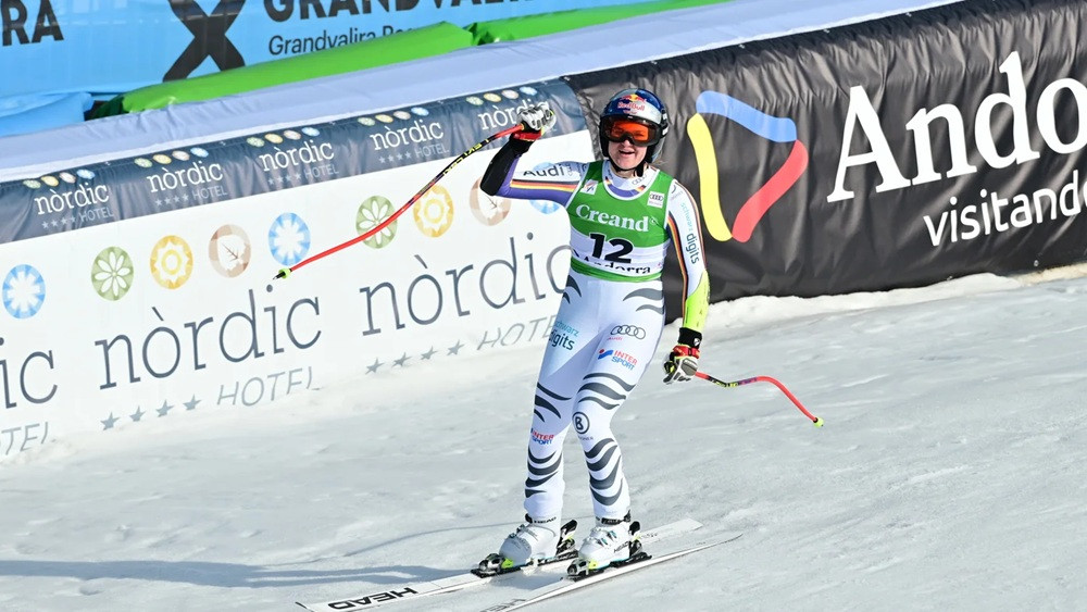 22 gadus vecā vāciete Emma Aihere bija pārliecinoši pirmā pirmās dienas supergiganta sacensībās Pasaules kausa posmā Andorā, izcīnot karjeras jau piekto uzvaru. Tikmēr pēc nesekmīgiem vairākiem startiem uz pjedestāla atgriezās jaunzēlandiete Alise Robinsone.