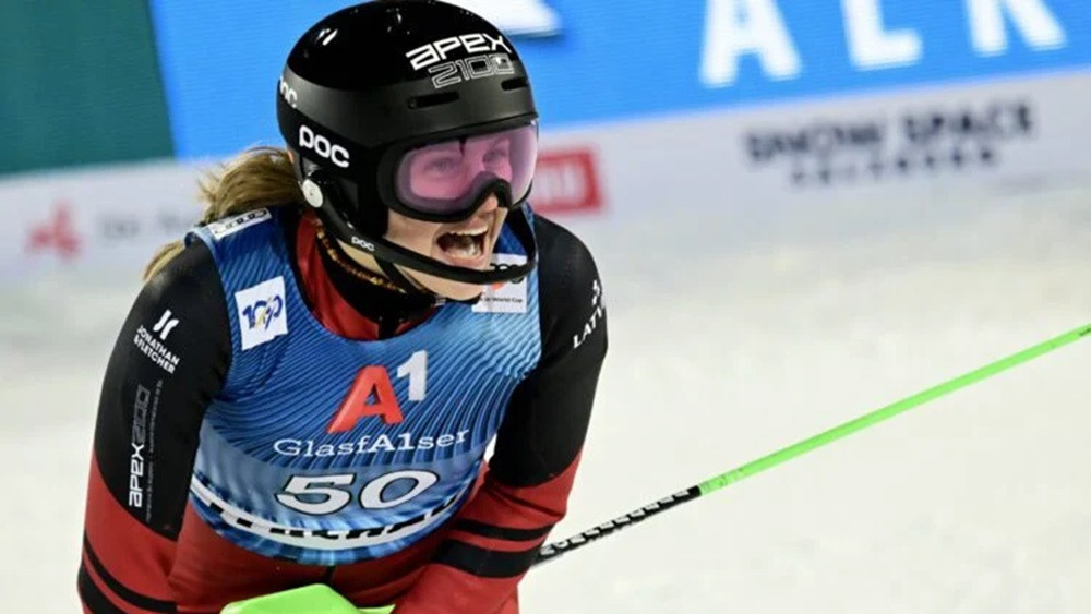Pasaules kausa posmā kalnu slēpošanā sievietēm slalomā, kas norisinās Kranska Gorā (Slovēnijā), Dženifera Ģērmane teicami veica pirmo braucienu, uzrādot desmito laiku un otro reizi karjerā pēc pirmās trases esot desmitniekā. Iepriekšējo piecu slalomu uzvarētāja Miakēla Šifrina no ASV atrodas tikai otrajā vietā, jo par sekundes desmitdaļu ātrāka bija šveiciete Kamilla Rasta.