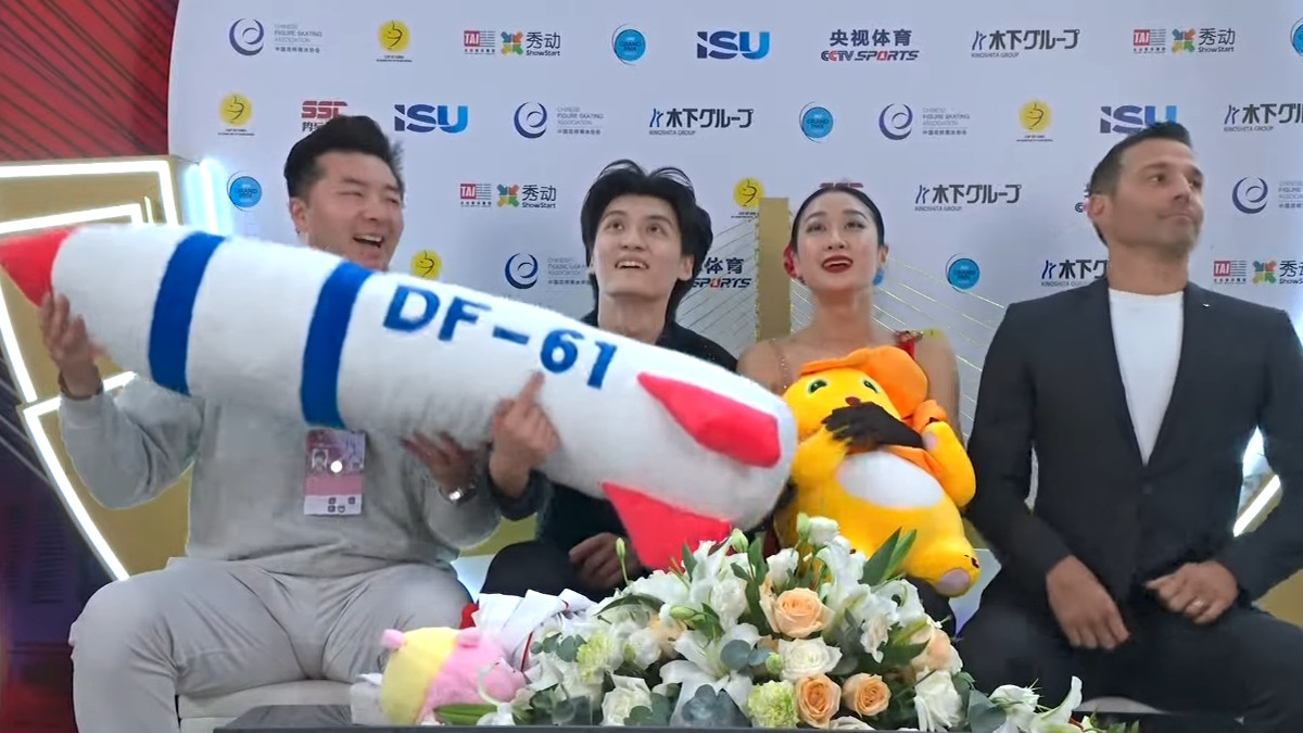 Starptautiskā Slidošanas savienība (ISU) veic izmeklēšanu pēc tam, kad Ķīnas ledus deju pārstāvji Čuncjinas "Grand Prix" daiļslidošanas sacensībās demonstrēja mīksto rotaļlietu, kas atveidota kā ķīniešu "DF-61" ballistiskā raķete.
